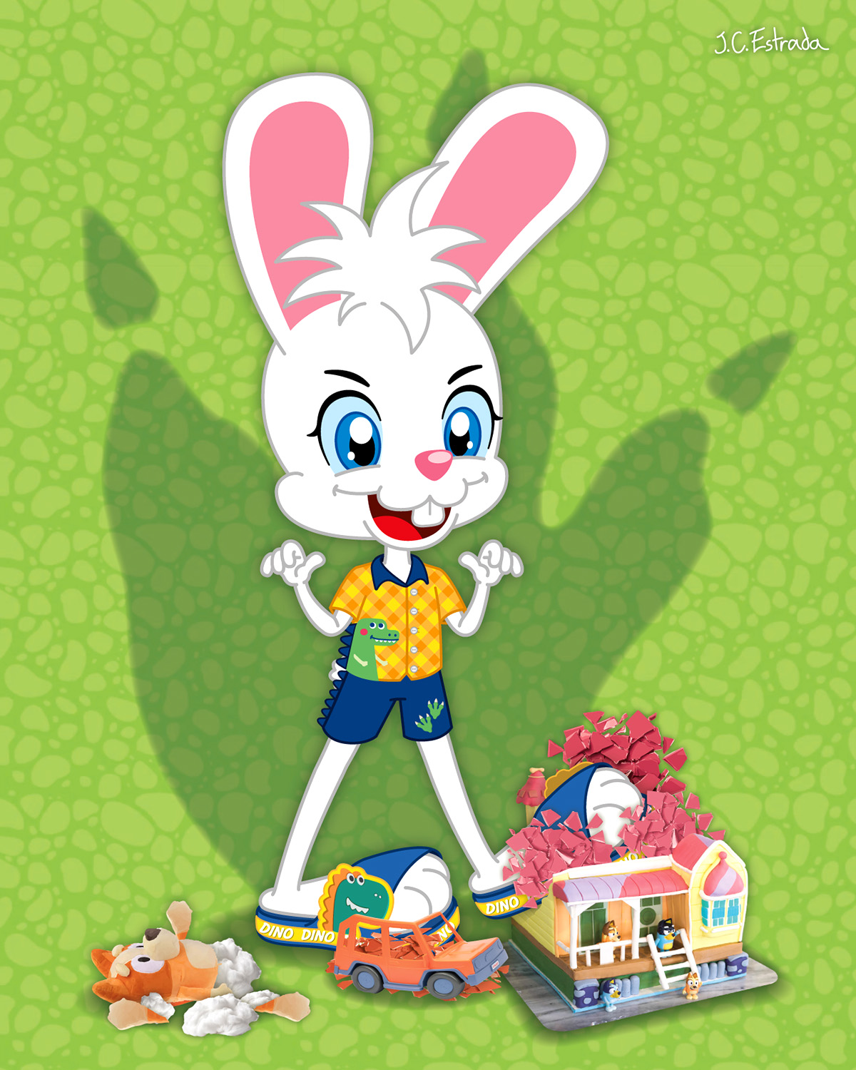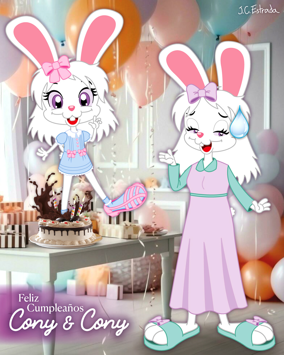 El día de hoy también celebramos el cumpleaños del Conejito Hans, y como cumple 15 años de haber sido creado a él se le ocurrió la idea de que lo vistiera como Quinceañera… Aunque eso no le quitó las ganas de destruir su pastel y aplastar sus regalos con sus sandalias de gala: espero que esas cajas no tuvieran algo que se pudiera romper 😅